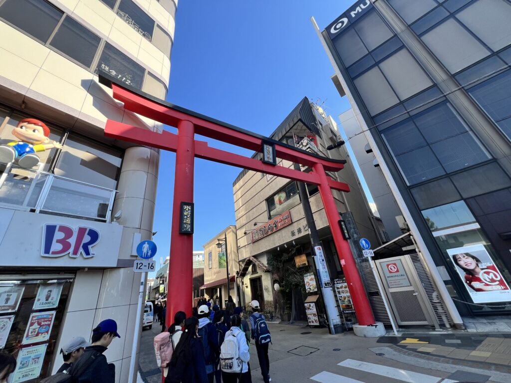 平日にも関わらず多くの学生たちや観光客で賑わい、鎌倉らしい活気を感じました。中国人観光客も多く訪れていました。天気がいいのが一番いいですね。