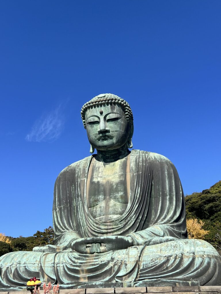 鎌倉の大仏。青空に映えるイケメンですね。御朱印帳の記帳は40分待ち・・・。この後の予定も詰まっていたので断念しました(T₋T)
