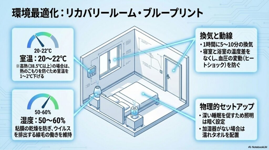 • 湿度:50〜60%(粘膜のバリア機能を守る)。