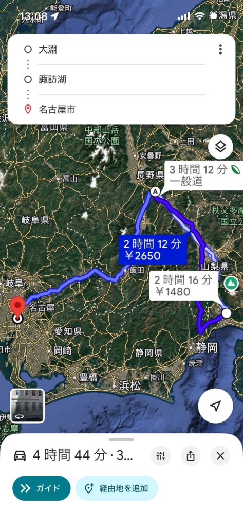 翌朝7時に出発し、山梨経由で長野県へ。
